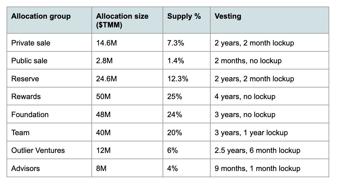 The Maximum supply of $WNT token is set as 200,000,000, and will be gradually released to Wicrypt ecosystem participants, investors, community and reserves as per the table below: